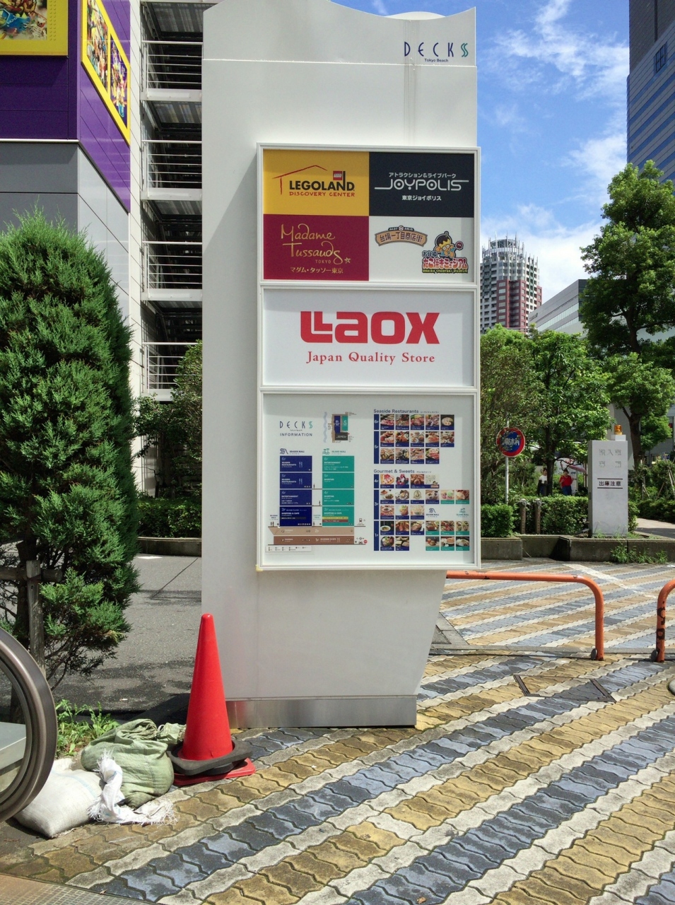 東京テレポート駅から徒歩5-6分の場所にある商業施設で、目の前の交差点は台風や大雨の時によくフジテレビで中継される場所です。