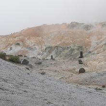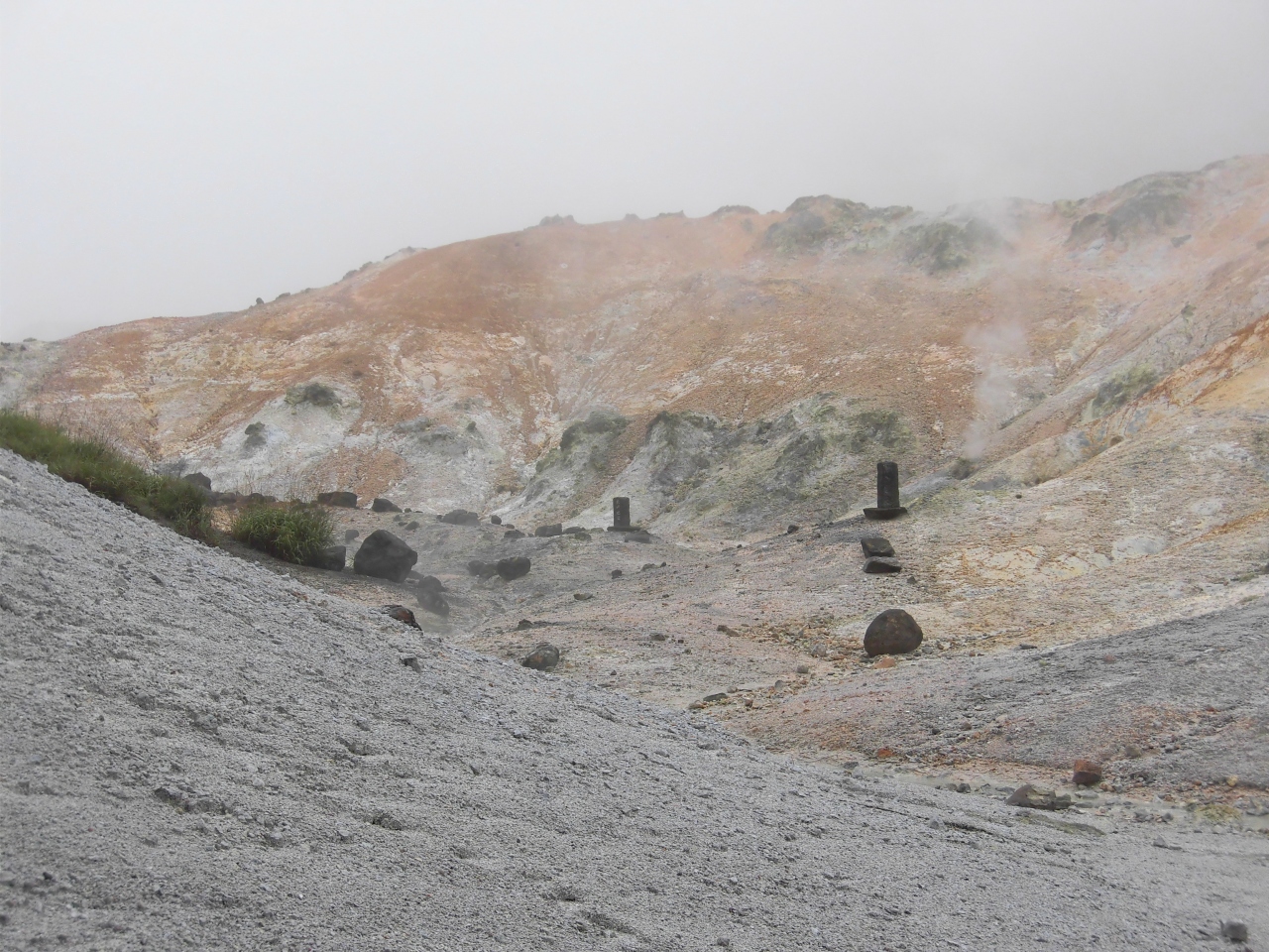 地獄谷入り口付近には大きな鬼の像があり、いよいよ地獄谷だなという思いがわきあがった。噴気があちこちからあがっていて地面も白っぽく黄色やうす茶色と明らかに通常とは異なっていて「地獄」という通常とは違う別世界を感じることができた。展望台もあり、より高い位置から見下ろすこともできた。臭いはそれほどではなく、普通に見学できた。外国のツアー客が多く、あちこちから聞こえてくる会話は外国語で日本語があまり聞こえてこなかった。