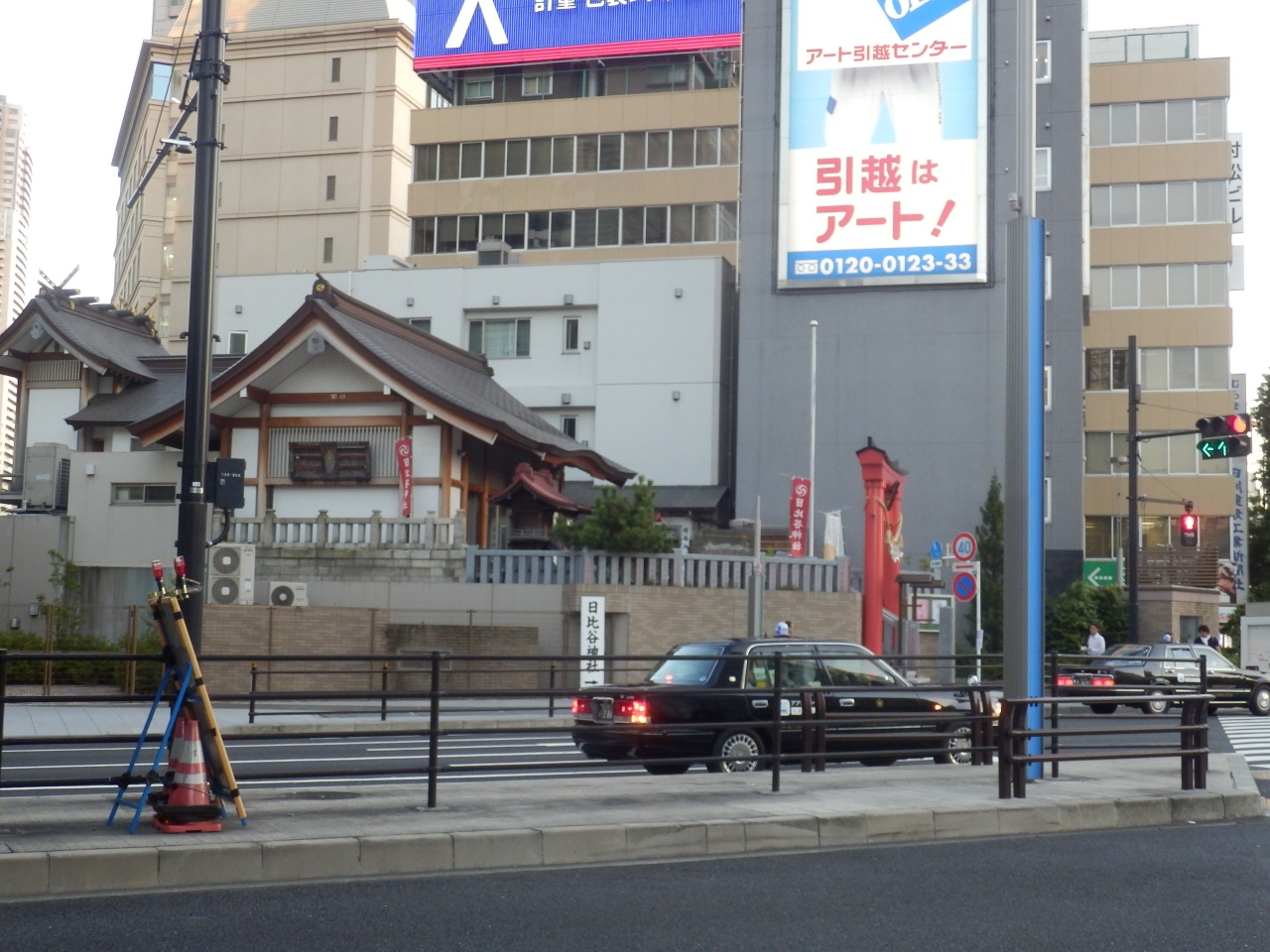 新虎通りの起点あたり、第一京浜との交差点に面した場所に建つ神社です。周囲はビルが建ち並ぶ大きな交差点の角地で、信号を待っている間、正面に神社が見えて、とても違和感のある風景に思えました。まだ新しいのか、とても綺麗な神社で、スーツを着たビジネスマンが参拝していました。