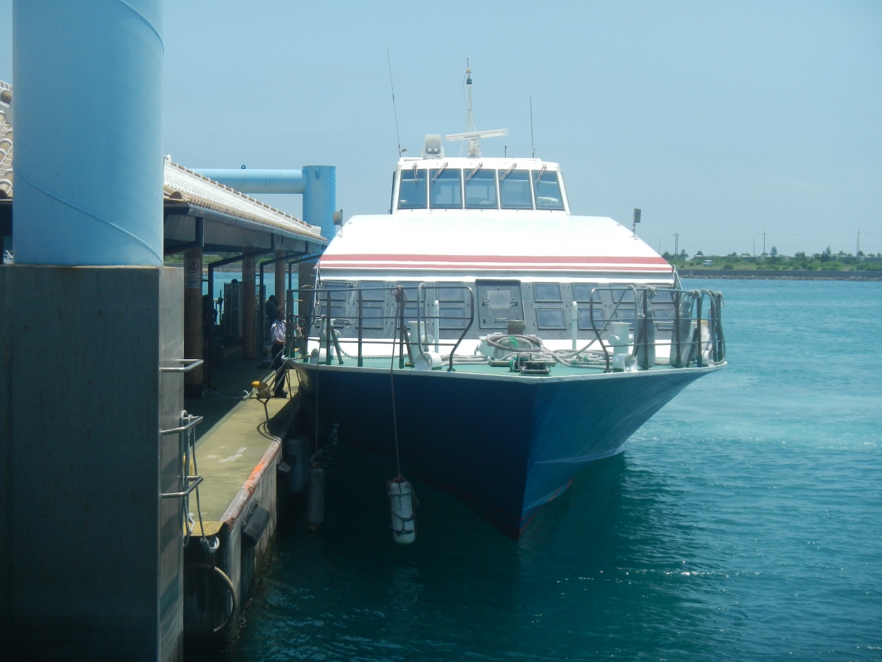この日は石垣島で事前の予約できる宿が見つからなかったにで、竹富島に渡り、泊まることにした。船はかなりの本数があるので、事前に予約する必要はなかった。ターミナル内の運行会社のチケット売り場で買う。割引券を使い890円だった。