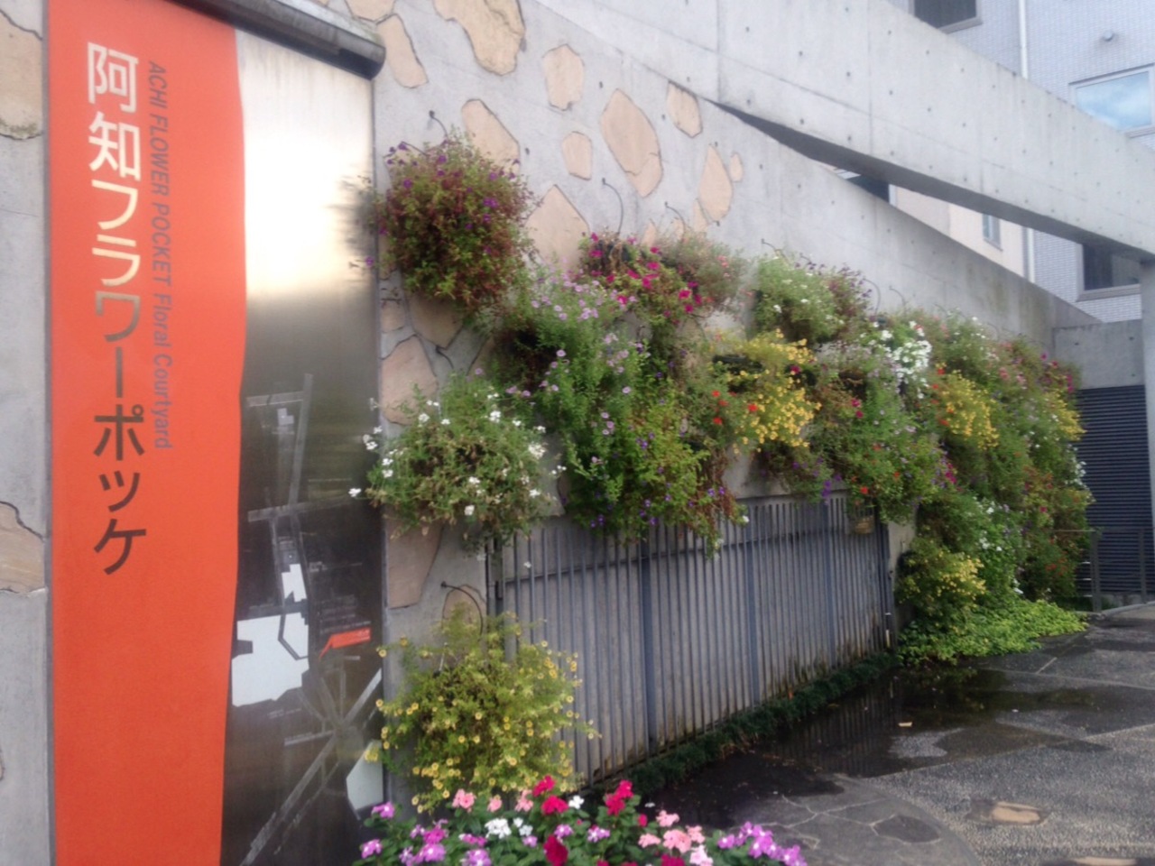 お花や木々が整備されたちょっとした空間で日よけになる棚みたいな下にベンチもありました。