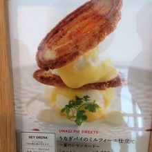 うなぎパイファクトリーの中に入っています。うなぎパイをつかったスイーツを食べることができます。週末だったので混雑していました。店内は広いのですが、ゆったりとした席の配置になっていました。だから混むのかな。ミルフィーユが甘かったけどすごくおいしかったです。