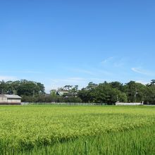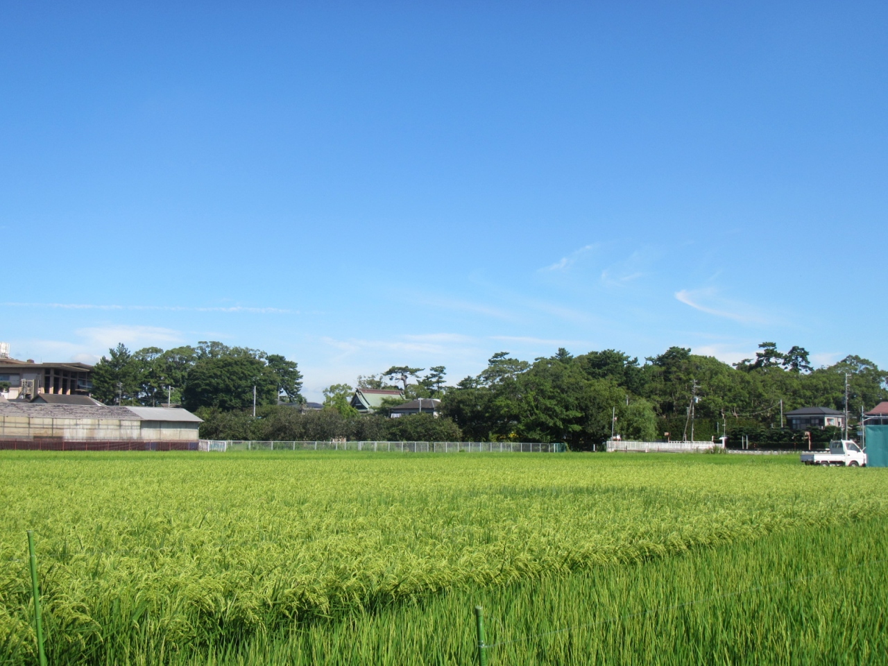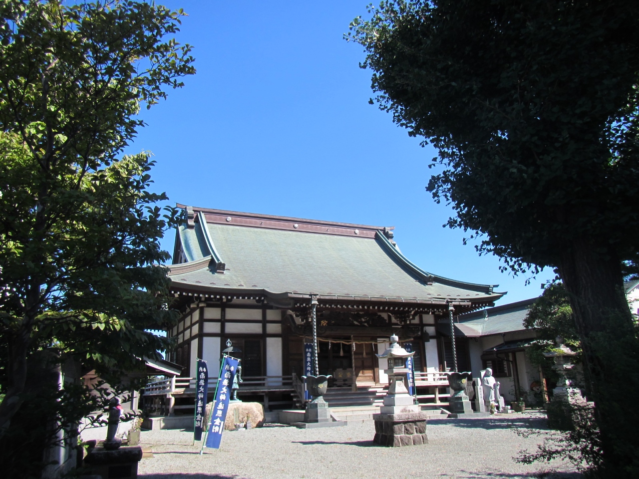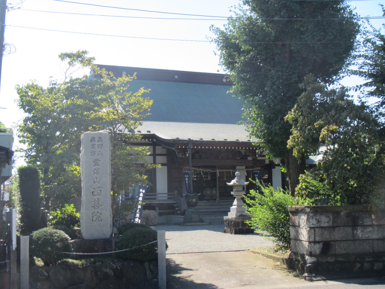 西善院や寒川神社の参道からは少し離れますが、東側の県道やわいわい市、神饌田がある東南方向から眺めると、寒川神社の森を背景に、お寺の緑青屋根の眺めが風情があります。