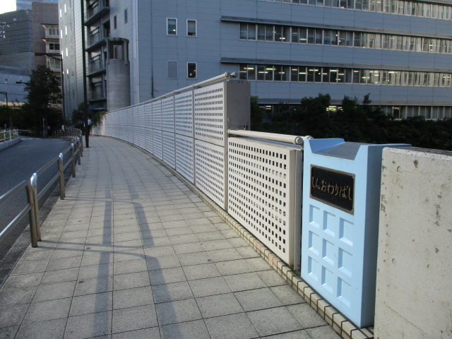 新橋駅から歩いて15分くらい昭和通りから海岸通りへと続く高速道路下の郵便局(銀座局)とベルサール汐留の間の道路に入ってすぐ左手に浜離宮前踏切の先に行くと新尾張橋はあります。さらに進むと朝日新聞社があります。新尾張橋は江戸時代に尾張徳川家の築地下屋敷があった場所で物資を水揚げしたそうです。今の橋は新しく面影は全くありません。