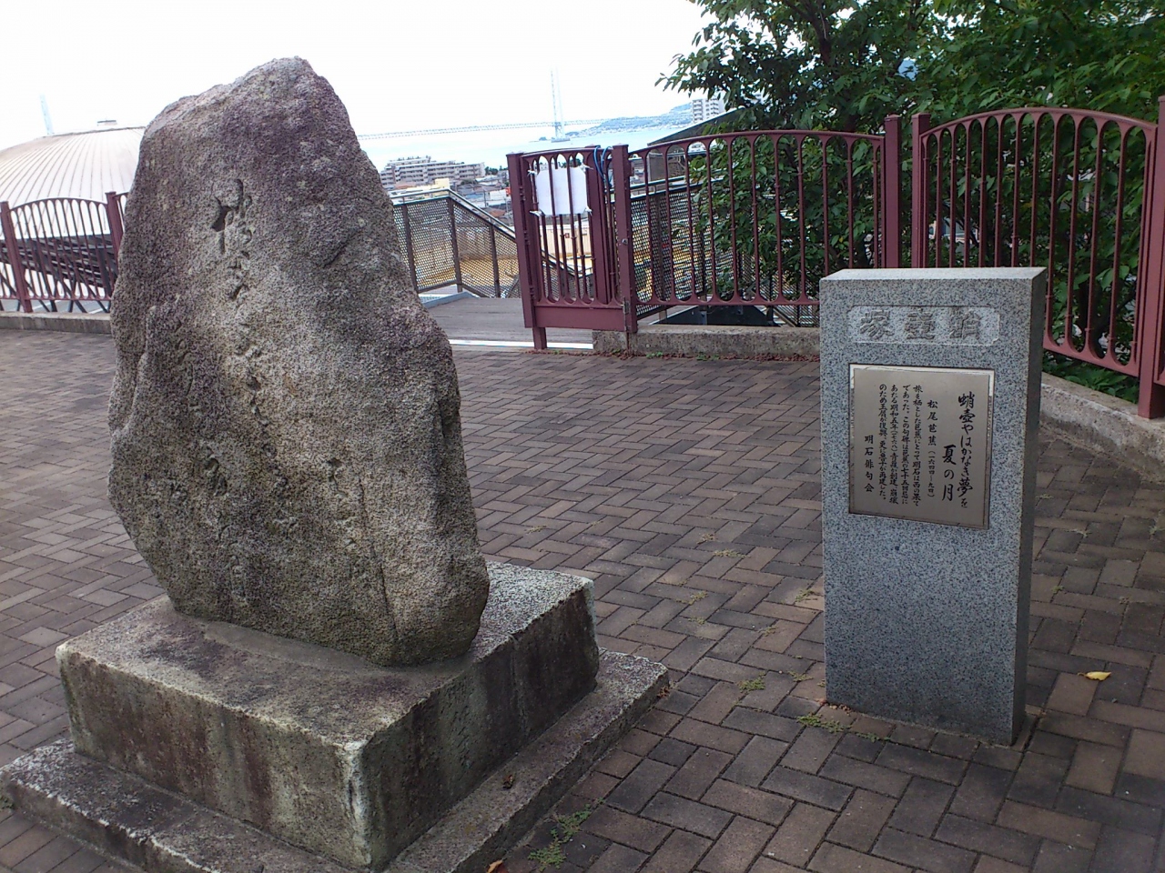 明石天文博物館の裏手の月照寺の山門と天文博物館の出口専用口の間にある石碑です。奥の細道で有名な松尾芭蕉の句碑で、壺やはかなき夢を夏の月という句です。奥の細道は東北地方が有名ですが、松尾芭蕉がこんな西日本まで来たことがあることを初めて知りました。驚きです。