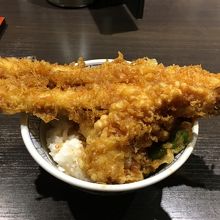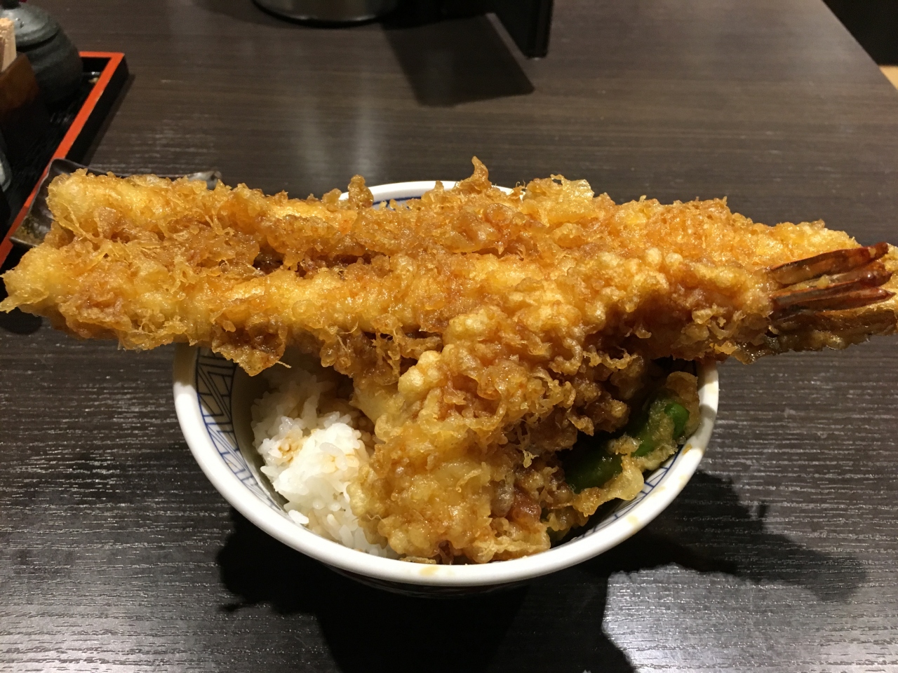 浅草で夕食を食べることになりネットで検索してみたらこちらが評判がよかったので行ってみることに。中は満席でしたが並んでいる人もおらず、店員さんに「少々お待ちください」と言われ外で待つことに。少々のつもりでしたが、30分待ち…できれば推定待ち時間を教えてもらえると有難かったです。さて、注文したのは天丼1900円。穴子がどんぶりからはみ出ておりインパクトがあります。その他に海老天とイカのかき揚げ。穴子はふっくら、海老はぷりぷり、イカも柔らかくて素材の良さを感じました。が、油切りがしっかりできていないのか油っこくて後半はきつかったです。お椀は別途注文が必要ですが、口直しにもなるので事前に注文しておいた方が良さそうです。