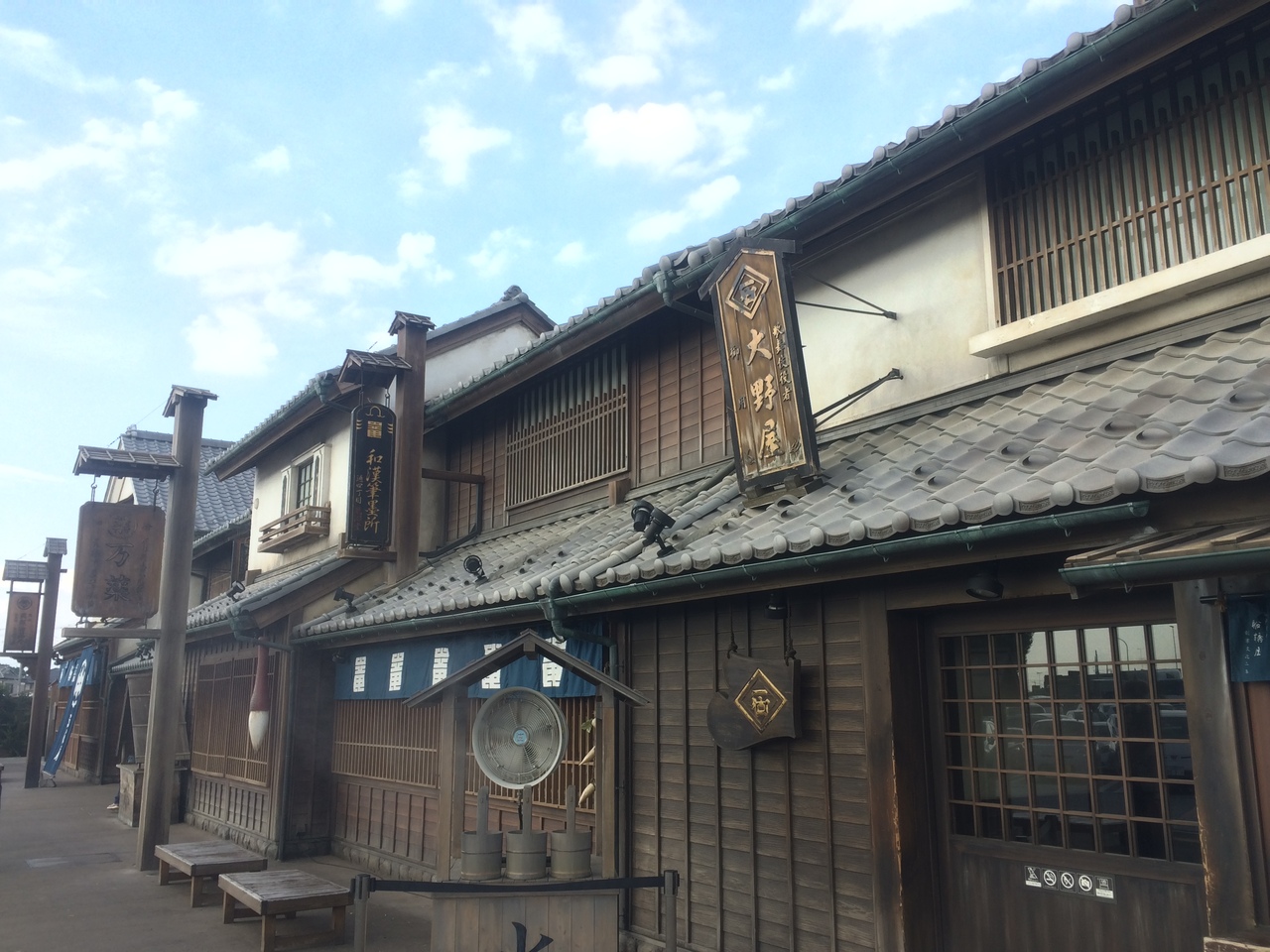 江戸の町並みを再現したパーキングエリア。細かいところまで凝った作りになっていて、テンションが上がります。何かお土産を買おうと中に入ると、中も江戸仕様。亀戸天神の有名な葛餅などを売っていました。え?都民が埼玉県で東京土産を買うこともないかな?と思ってやめました。