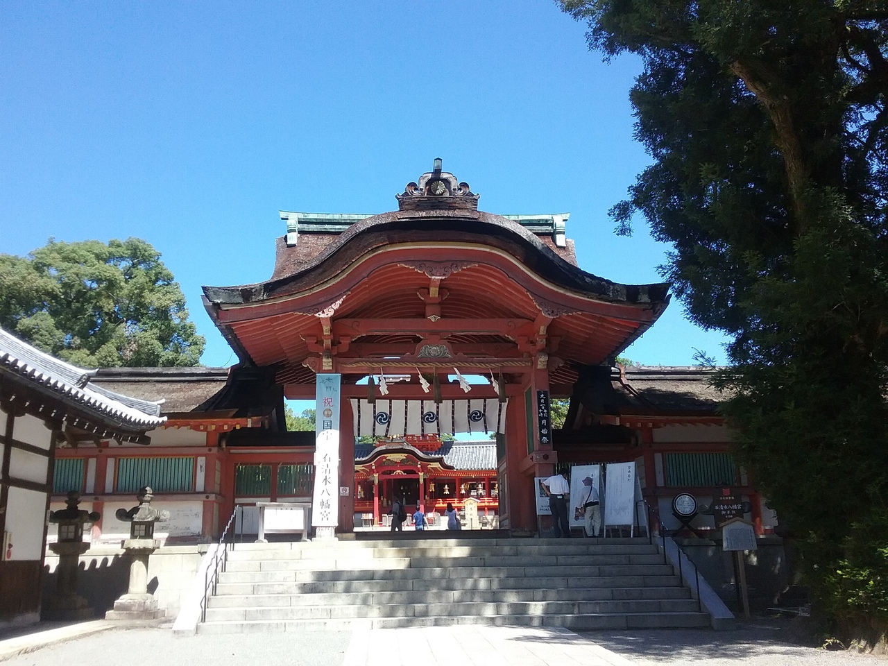 京都府の外れ、八幡市にある神社です。珍しい八幡造り、朱の本殿は荘厳で一見の価値はあると思います。階段の参道を登るのはたいへんなので、往路はケーブルカーをオススメします。片道200円で5分程度です。参道は緑豊かなので復路はゆっくり歩いて戻ると気持ちが良いです。