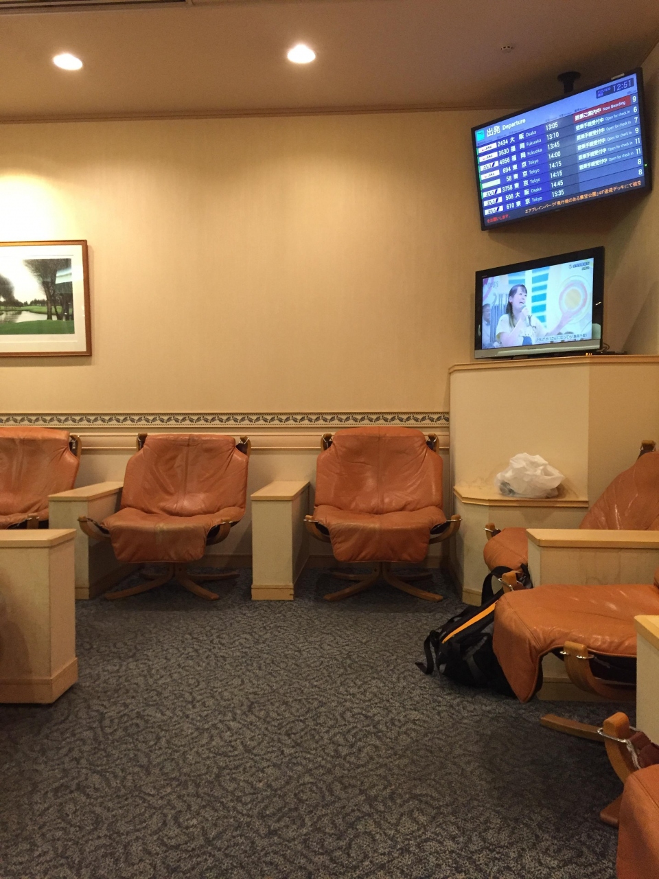 名前からしてクレジットカードのラウンジと思ってしまいました。実際にはJALとANAの共通ラウンジになっています。ですので、受付には両社の読み取り機が置いてあります。航空会社直営のラウンジではありませんので、多くを期待するのは酷かと思います。くたびれたソファですが、静かに過ごすことが出来ました。WIFIはラウンジ独自のものはなく、空港内の無料のものを利用する仕組みになっています。