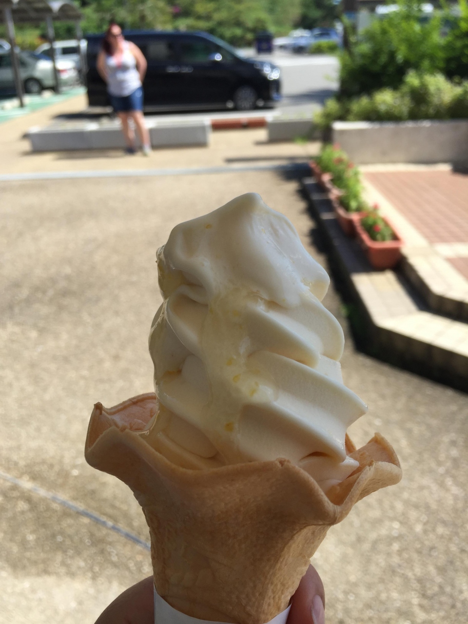 鬼の洗濯板と日向夏ソフトクリームを食べてみたくて訪問しました。鬼の洗濯板を見下ろす高台にあるので、素晴らしい景色が楽しめました。海岸まで降りる階段もありますが、狭くて急です。歩きやすい靴で元気な方でないと上り下りはきついと思います。注意喚起を促す看板も出ています。名物?のソフトクリームはバニラ、マンゴ、明日葉、エビ、日向夏があり、各350円でした(2016年8月現在)。日向夏をいただきましたが、バニラに日向夏クリームがちょろっと入っていて、また食べたいとは思えない内容でした。半分の容量で良いので、もう少し質を重視したタイプが良いと個人的に思いました。