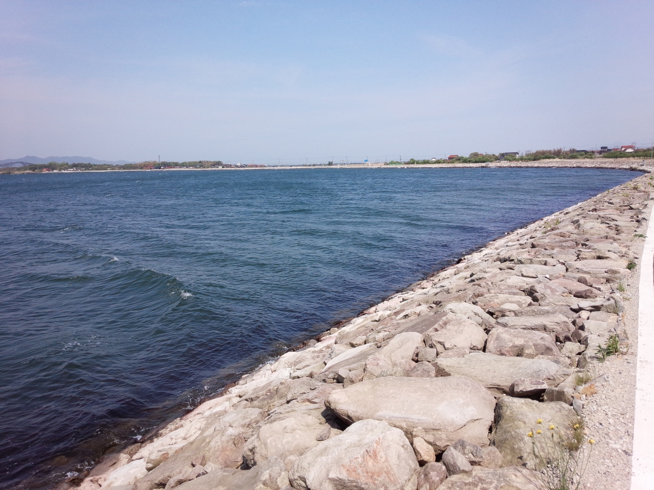 島根県に属する島ですが、観光地のひとつであるべた踏み坂(江島大橋)は鳥取に伸びているので、ちょうど間にある感じです。