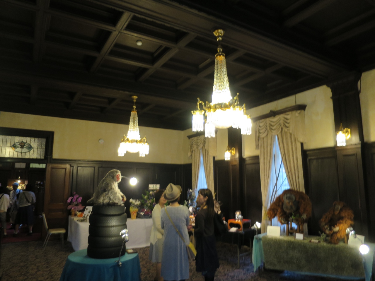 萬翠荘にはボランティアの方が居られとても親切に説明をしてくれます。例えば1Fの広間の天井には良く見るとキラキラと輝く材料が使われているとか、同敷地内の奥に愚陀佛庵があったが土砂崩れで全壊してしまったとか、ガイドには載っていないことを教えて戴けました。また、2階へ上がる踊り場のステンドグラスをバックに写真等も取ってくれ、その親切さに感心してしまいました。勿論ボランティアガイドは無料です。