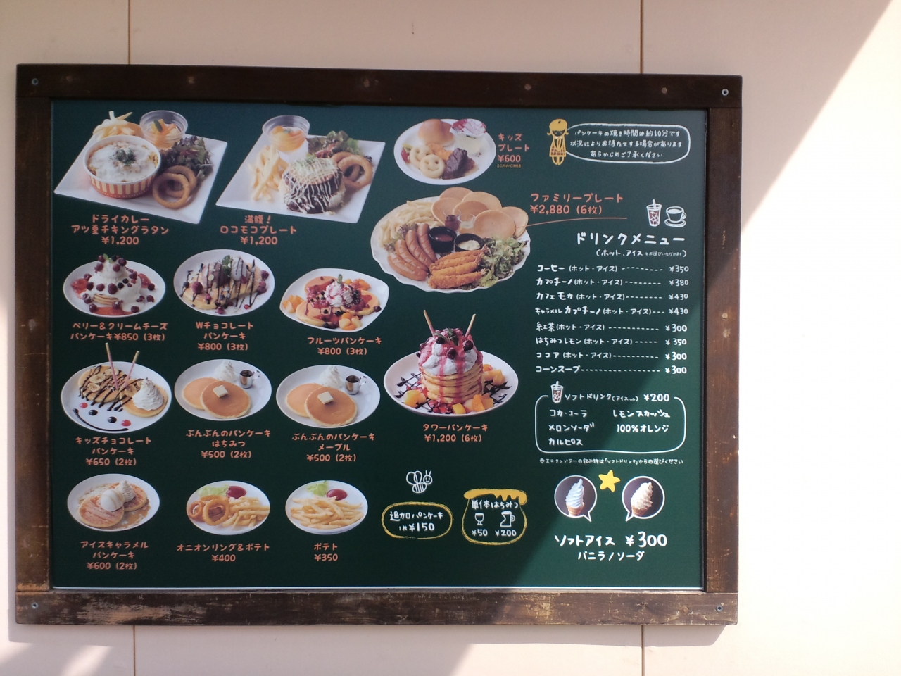 フルーツやクリームがデコレーションされた、スイーツ系のパンケーキの他に、食事系のパンケーキもあり、おやつだけでなく軽食にも利用できます。