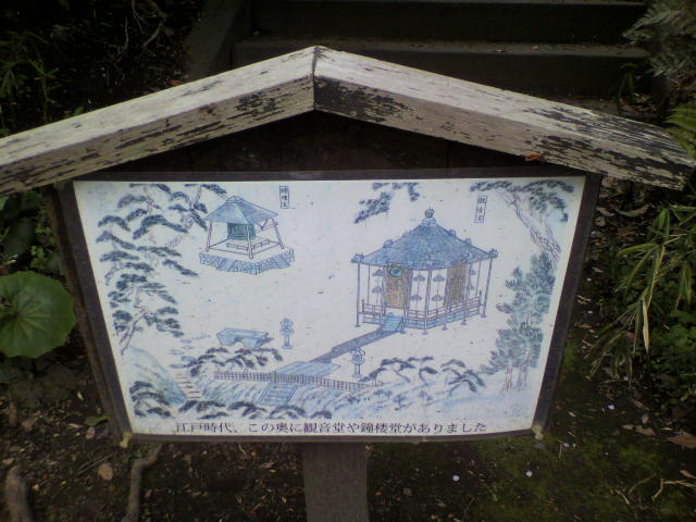 江戸時代にはここに観音堂があったそうですが、今では石の階段だけが残っていてうっそうとした雰囲気に、ちょっと怯んで先には進めなかったです。