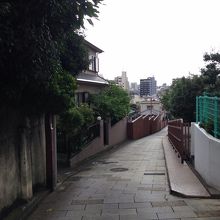 お寺と民家の間にある坂は歩行者のみの道でなかなか雰囲気が良かった。夕暮れ時も味がありそう。