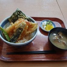仕事で移動中に立ち寄った、パサール幕張で食事をした際に利用しました。フードコートに並んでいる飲食店のカウンターの右端にあってメニューは海鮮丼系と天丼系を柱にしたお店です。自分は天丼を注文しました。エビ、イカ、アナゴ、キスなどの海鮮のてんぷらとなすのてんぷらなどがのったもので、注文を受けてから天ぷらを揚げて、天丼として提供するので、その点は熱々でよかったです。ネタそのものについては若干小ぶりだったりして、ボリューム感としては弱いかな、という感じです。サービスエリアのご飯としては可もなく不可もなくで相応かなという感じです。