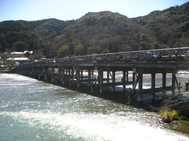 3月の3連休の最終日に子供たちと嵐山に行きました。桜にはまだ少し早かったのですが、行楽シーズンとあってすごい人でした。久々に見る渡月橋は古風で優美なたたずまいでしたね。橋の形も非常に良いいかにも月が似合いそうなそんな調和のとれた渡月橋を子供たちと飽きずに眺めていました。