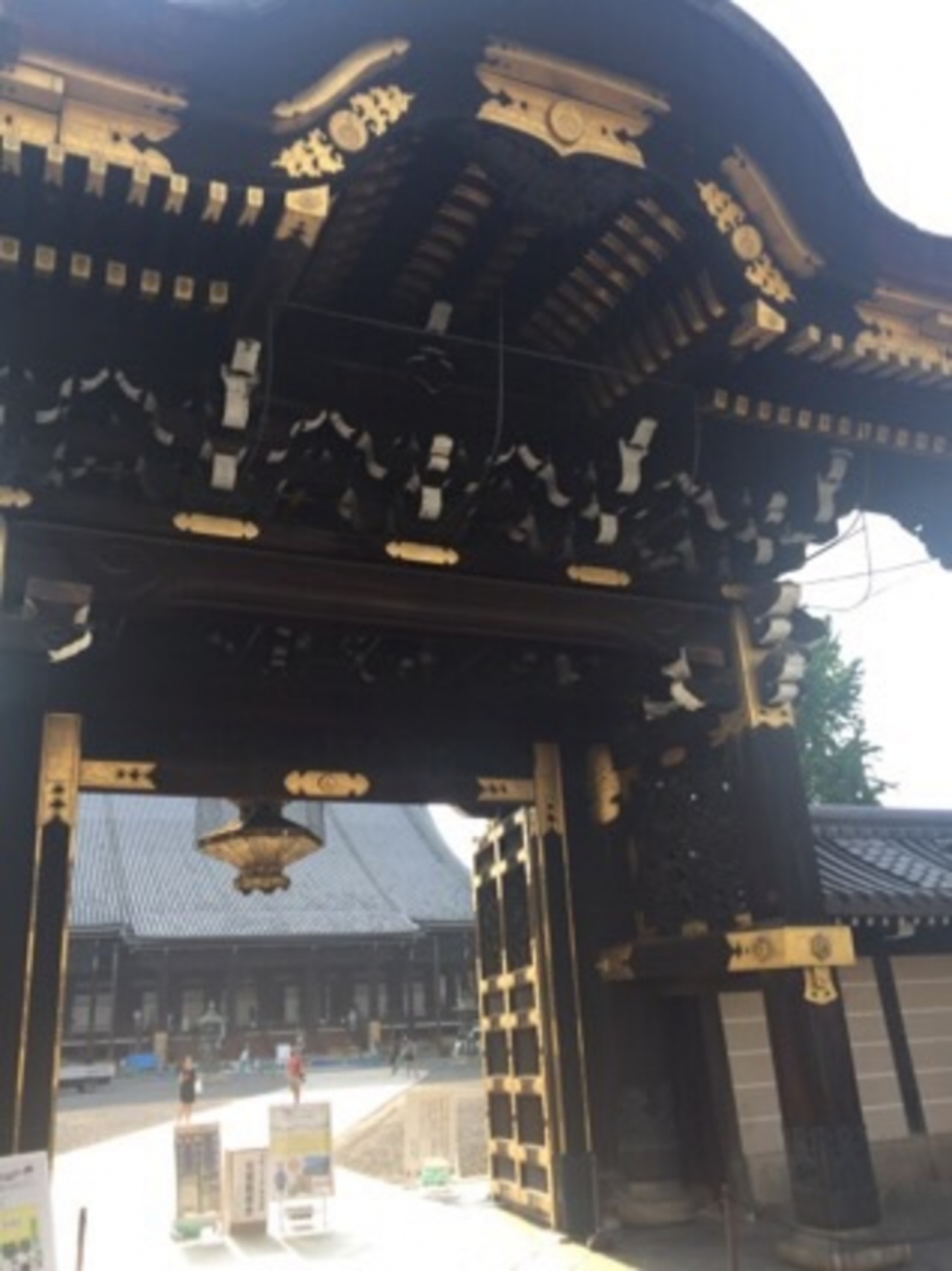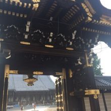 西本願寺の入り口で、国道1号線から境内に続く大きな門です。重厚なうえに、装飾もきらびやかな門になっています。