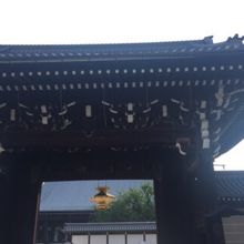 国道1号線から境内に続く大きな門で、近くの阿弥陀堂門は重厚で装飾もきらびやかな門ですが、こちらの御影堂門は割とシンプルな大きな門です。堀川通りを挟んで総門があり、寺院の門前町のような形になっていて、正門という形になるのでしょうか…