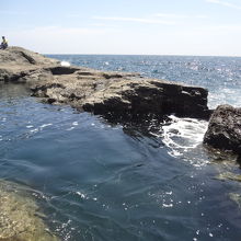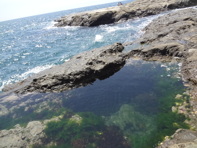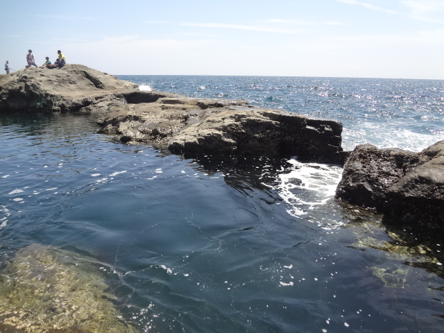 江の島岩屋に行くまでにある岩場です。思ったより海が綺麗で自然をたっぷり感じることができました。釣りを楽しむ人もちらほらいました。