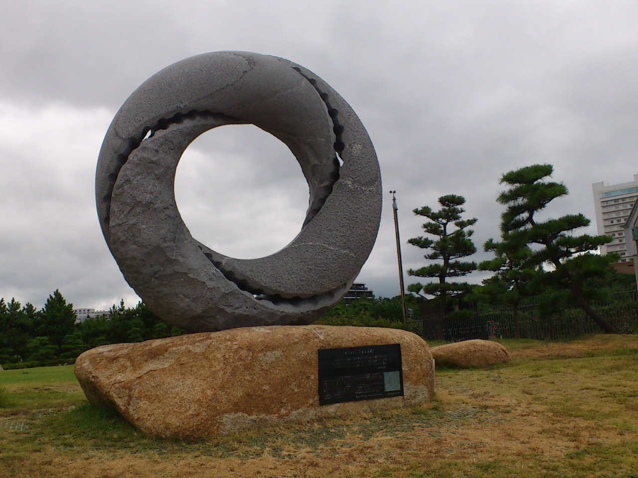 明石大橋のたもとに広がる舞子公園の中にあるオブジェクトです。緑色が映えている建物の孫文記念館のすぐ側の芝生の中にあります。円空から未来の発展を展望しているのだそうです。そういう意味では名前もそれを表していて素敵です。