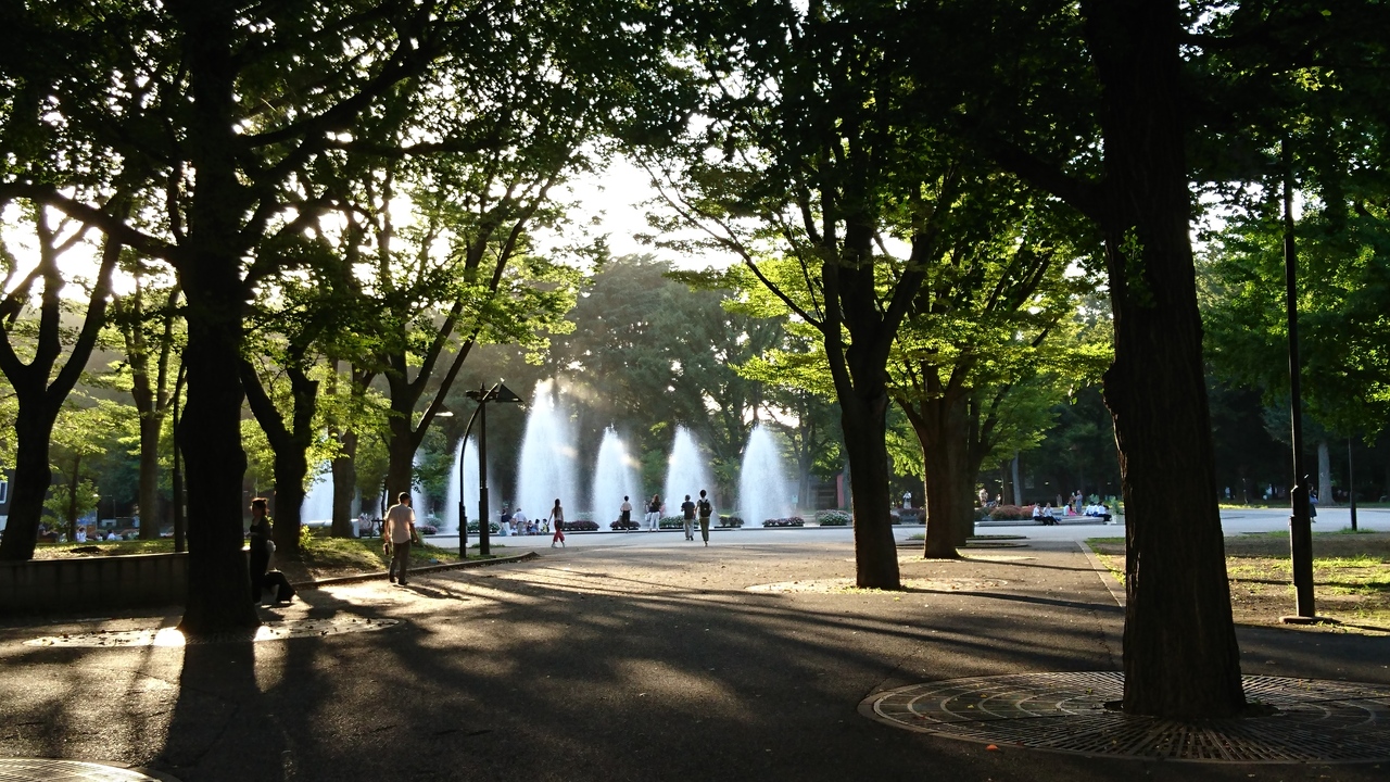 噴水が暑さを和らげてくれる、広々とした上野公園。科学博物館のあとに訪れました。
