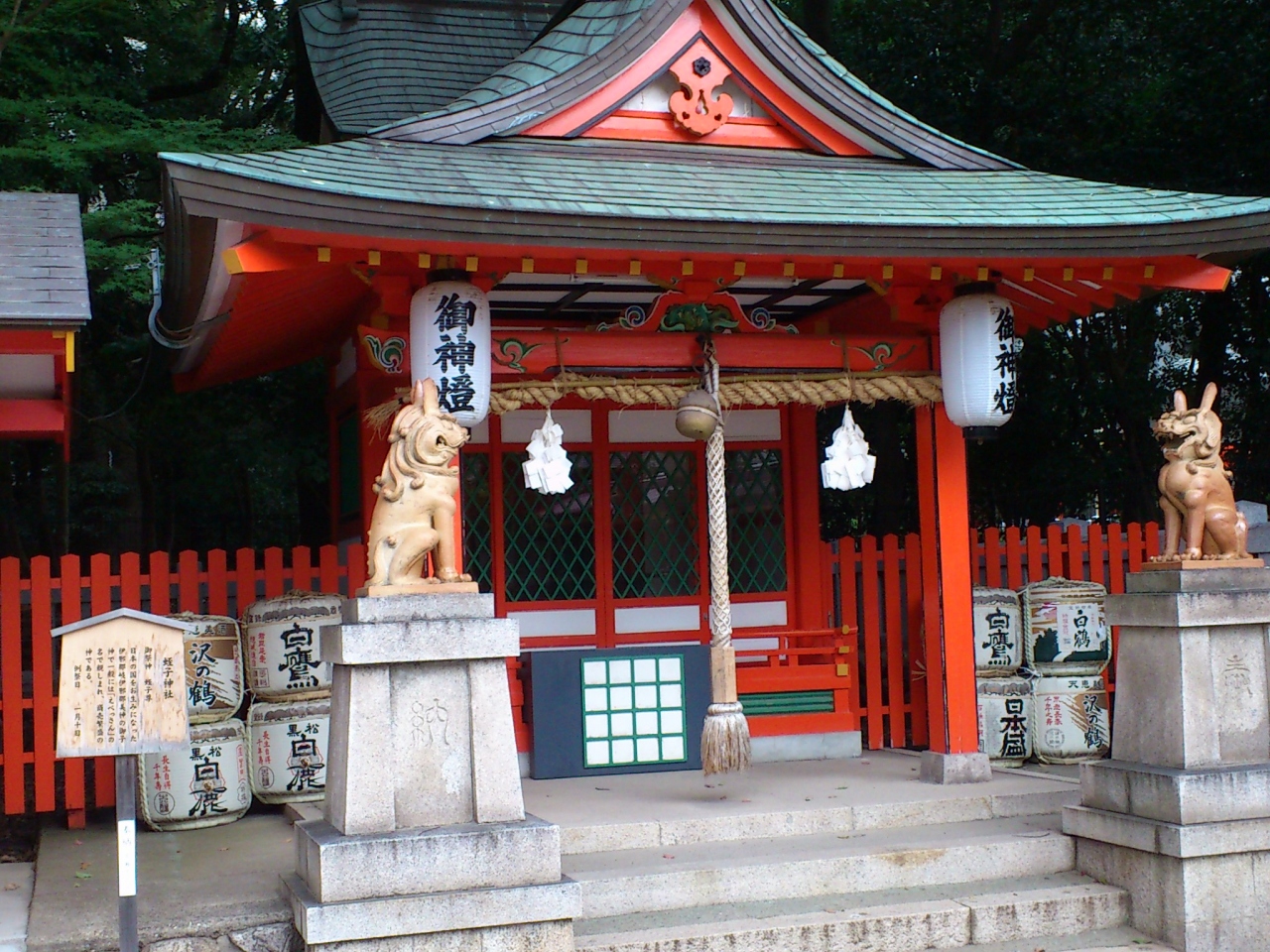 神戸三宮の有名な神社の生田神社の境内の中にある末社です。生田神社の本殿の真裏にあり、生田の森の真ん前にあります。御祭神は蛭子命で、いわゆるエビスさんです。商売繁盛の神様で、恵比寿と書く方をよく見ますが、蛭子もエビスさんなのだそうです。赤い社殿の両側に狛犬までいる末社にしては立派です。