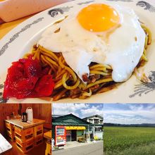 2009年から横手焼きそば四天王を守り続けているお店です。ビールケースでできた机と椅子は食堂ならではの雰囲気でした。お出汁で茹でているのか?焼きそばの下には汁がありました。おソースを追加して食べるのが美味しかった。