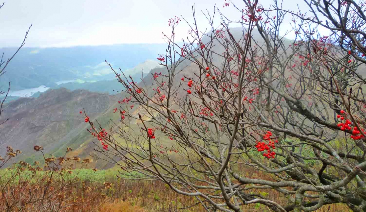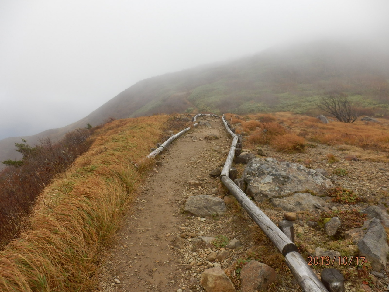 日本百名山の一座です。猫魔八方台登山口ゴンドラから山頂までの往復約5時間(休憩を含む)の山登りです。草紅葉と紅葉を見る目的で登ったのですが、残念ながら紅葉が少し残っているだけでした。当然ながら野花も何もありません。その代わりに山頂近くで、季節はずれの霧氷をみることが出来、感激しました。
