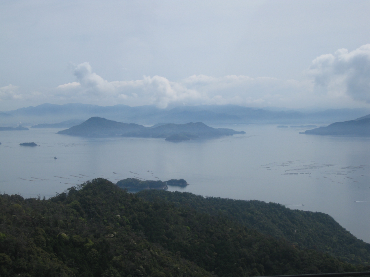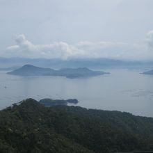 ロープウェイ頂上駅からすぐにあります、遠くは呉市まで見えるそうですが生憎の曇りでカスミがかかっていましたが、島々が見えました、展望台の所は少し開けているのでのんびりと島や景色を楽しめますのでお勧めです。