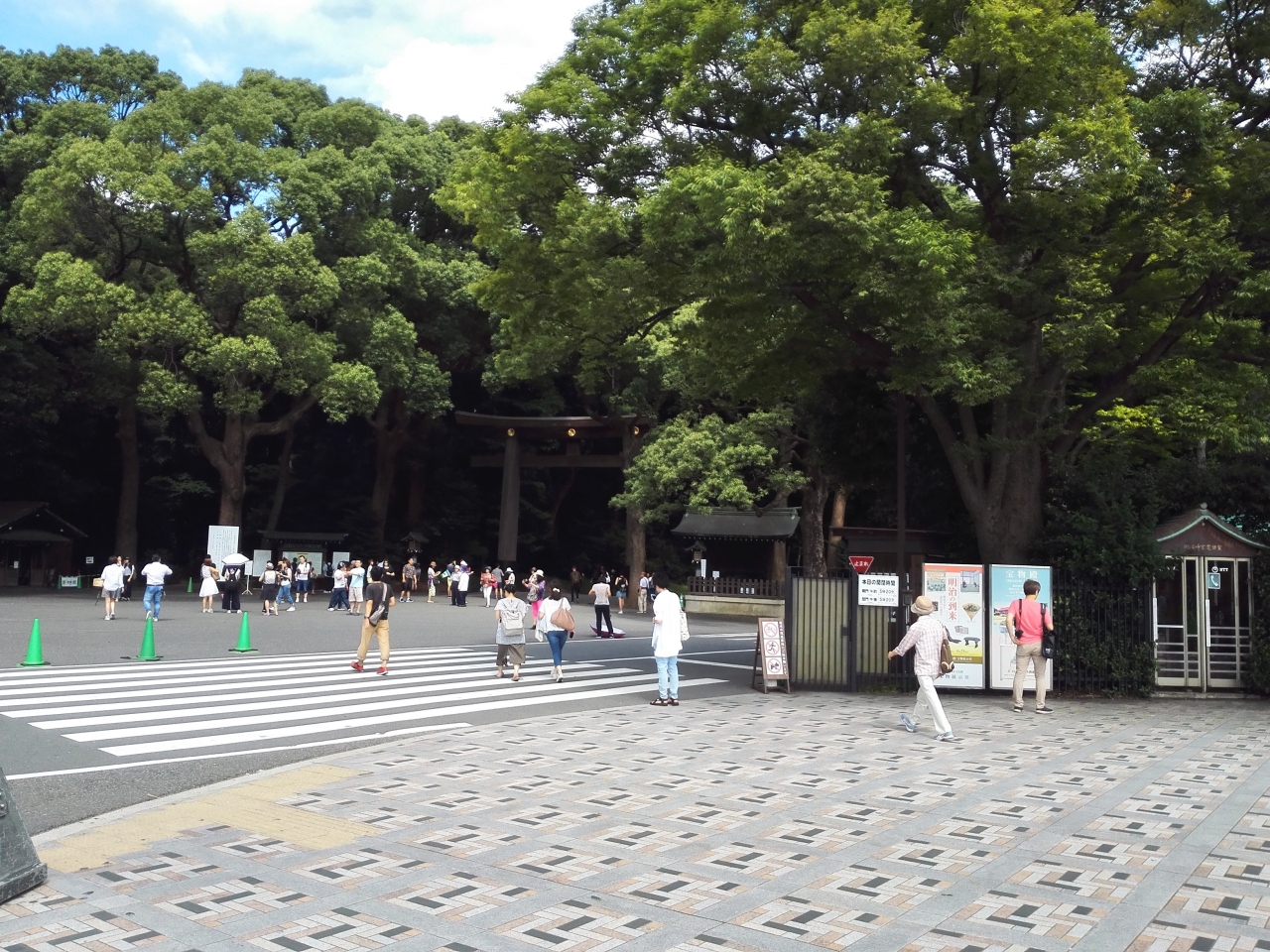 鳥居をくぐって中を進んで行くとヒンヤリした空気が漂い、原宿とは別次元の空間にいるような感じになります。