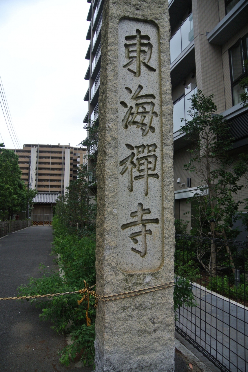 山手通りに面して「東海寺」と刻んだ大きな石柱がありましたが、綱が張られ、さらにその奥の門の前には工事用の黄色と黒の柵が置かれてこちらからは入れないようでした。ぐるっと西側にまわると、門が開いていましたが、通用門のような感じで、入っていいような、悪いような・・。結局、門のあたりから中を拝見させていただくにとどめました。