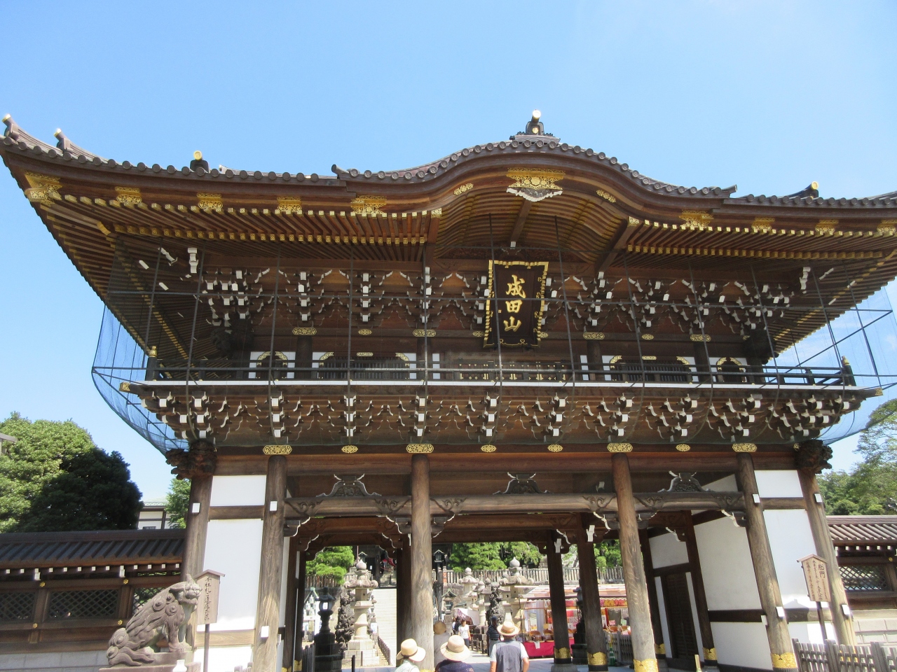 成田山新勝寺に行くため、参道を行くと最初に見えてきます。2007(平成19)年には開基1070年祭記念大開帳時に完成したそうで、高さ約15m、幅約14mの総けやき造り、参拝に訪れる人々を迎え入れるシンボルとなっています。
