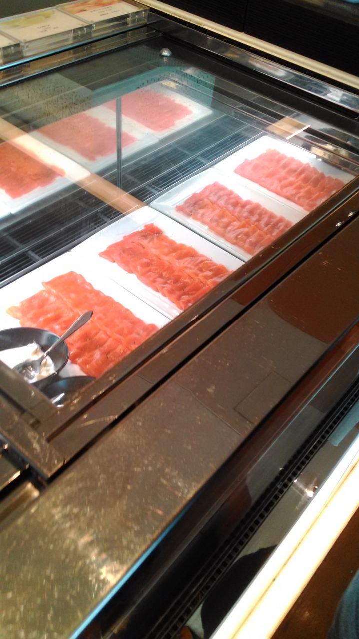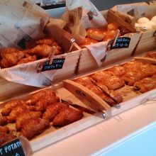 その場で握ってもらえるおにぎり、チーズ、ハム、フレッシュオレンジじゅーなど、