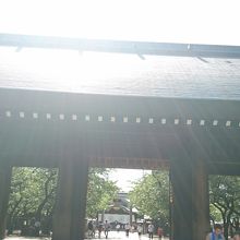 第二鳥居をくぐると神門です。堂々としたりっぱな建物で、また、扉に掲げられた菊の御紋は必見です。大きさは1.5メートルだそうです。神門の前に手水舎がありますので、こちらで手や口を清めるのを忘れないようにしましょう。