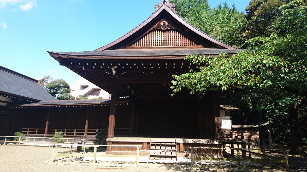 神門を入って右手の方にあります。年月が経って落ち着いた色合いになった風格のある建物でした。一度この舞台での能を見てみたいものです。能楽堂の他にも、茶室や相撲場など、日本の伝統芸能・文化の施設が靖国神社の境内にはあります。