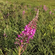 何の植物か不明ですが、葉先が赤くなっていて、湿原全体がピンクがかったオレンジ色になっていて、とても綺麗でした。