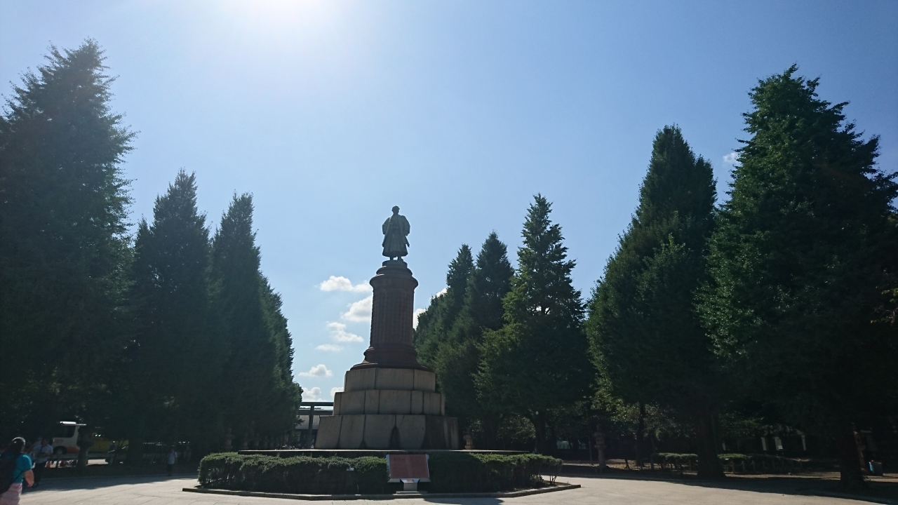 靖国神社の参道は三つの鳥居がだんだんと小さくなっていき、真ん中にはこの像が位置するとよく考えられた配置だと思います。が、台座が高く、またちょうど逆光だったので、顔がよく見えませんでした。靖国神社は元々は戊辰戦争で亡くなった人を弔うために造られたもので、大村益次郎がその建立に当たって尽力したことから銅像が建てられたようです。
