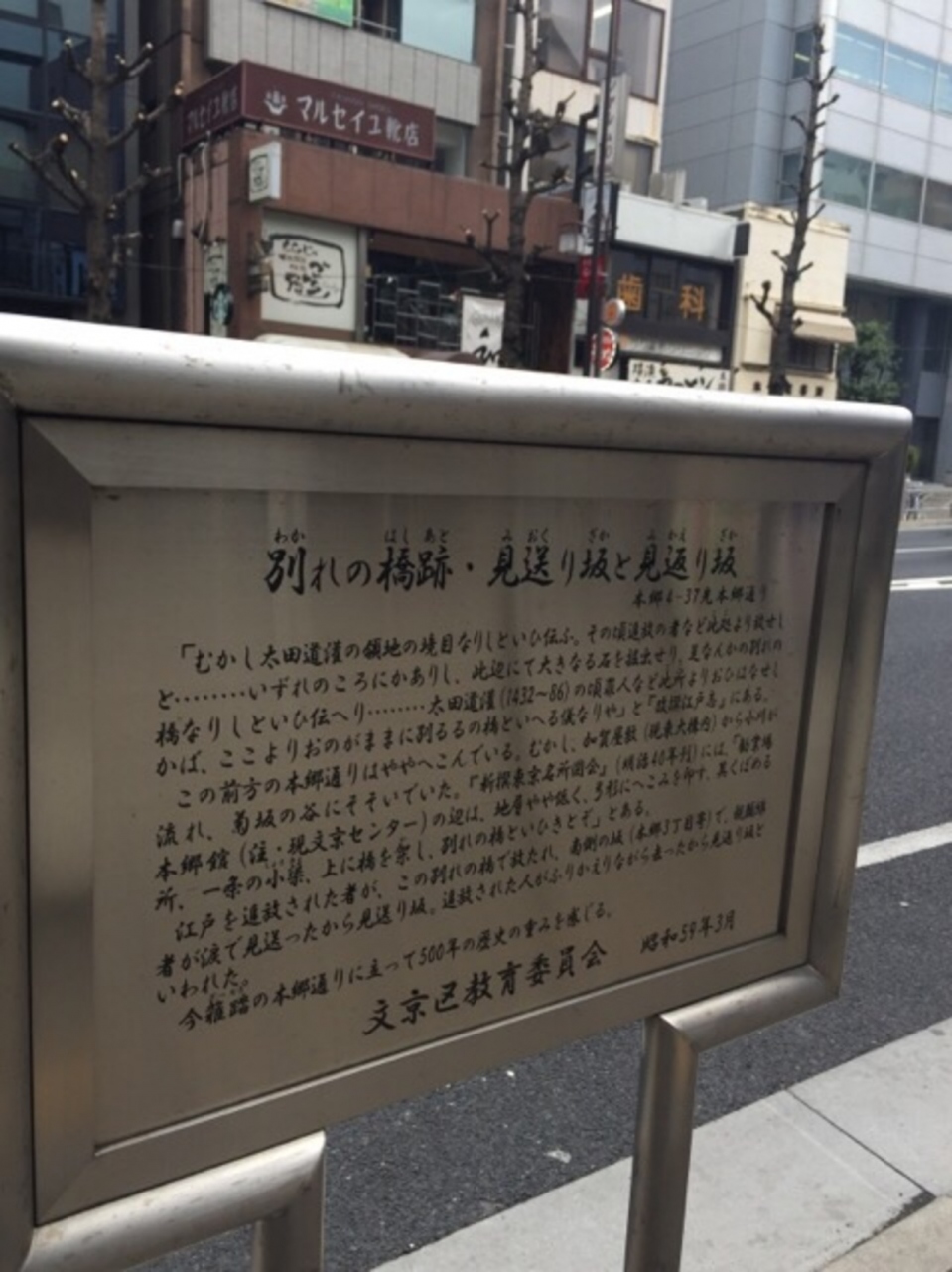 名前の理由は、この辺に小川があって、橋が架かっていて、通称別れ橋と呼ばれていました。その橋は江戸追放の罰を受けた者と親類の別離の場所となったようです。ここから江戸を離れてどの方面に向かうのでしょうか…
