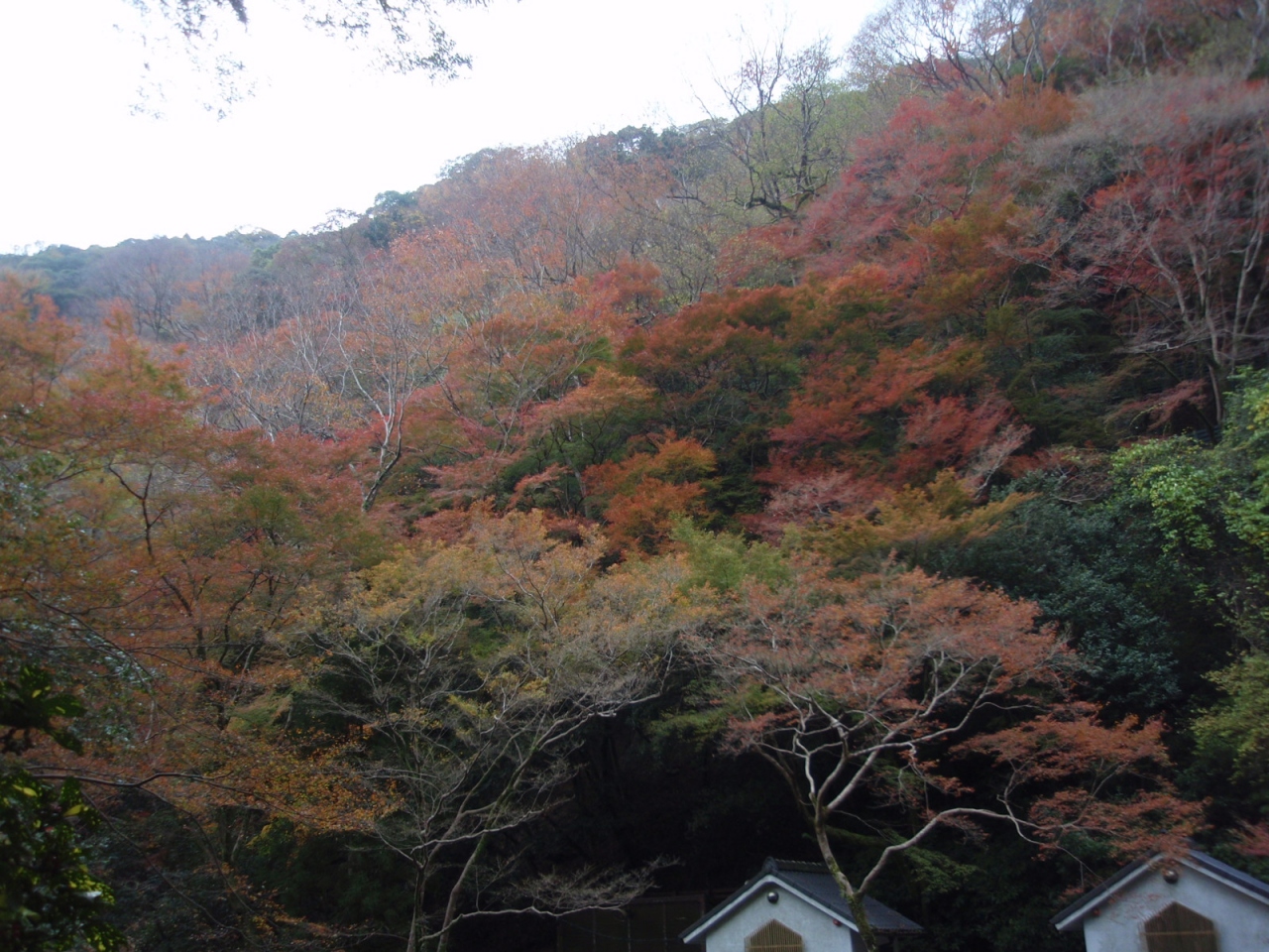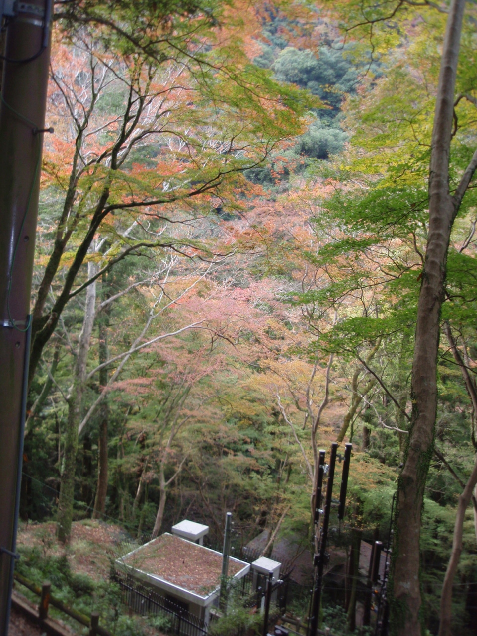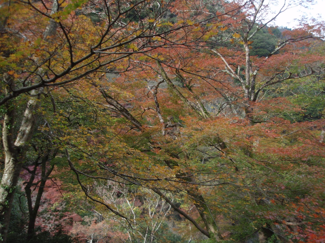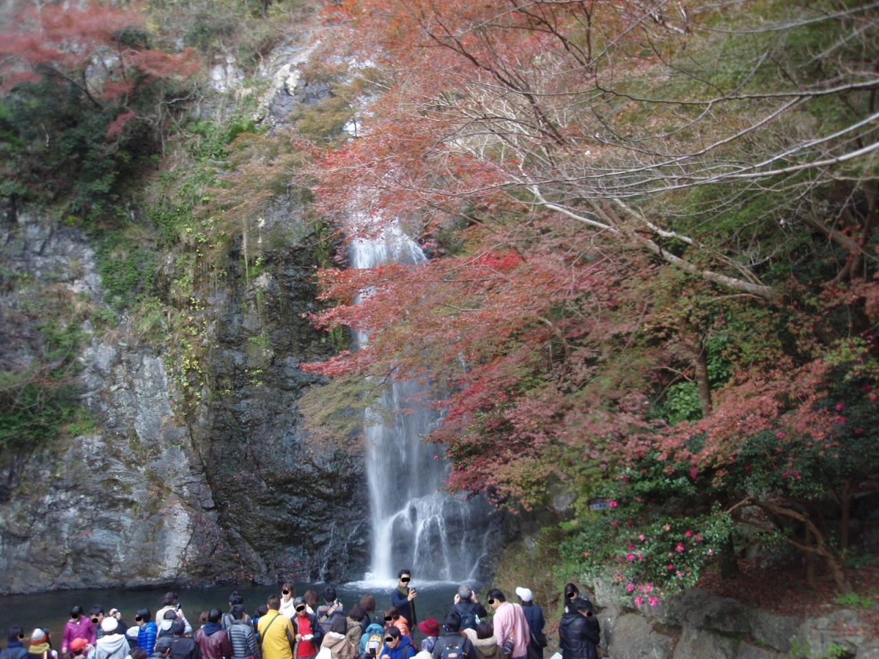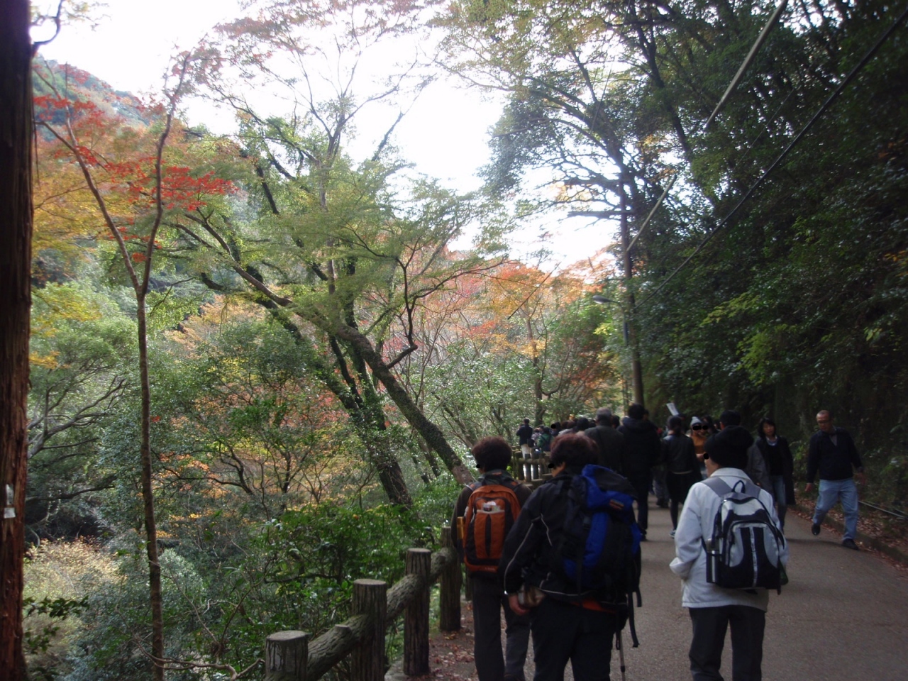 阪急箕面駅より、遊歩道を歩いて約30分で行くことが出来ますが、今回は天上ケ岳登山の下山時、ここ箕面大滝を通って箕面駅に向かいました。箕面大滝の滝上から大滝におりるまでと、その後箕面駅までの遊歩道の両側に真っ盛りの紅、黄色の紅葉が見られます。見事です。ただ駅から歩いて見に行けるので、人の多さが難点です。