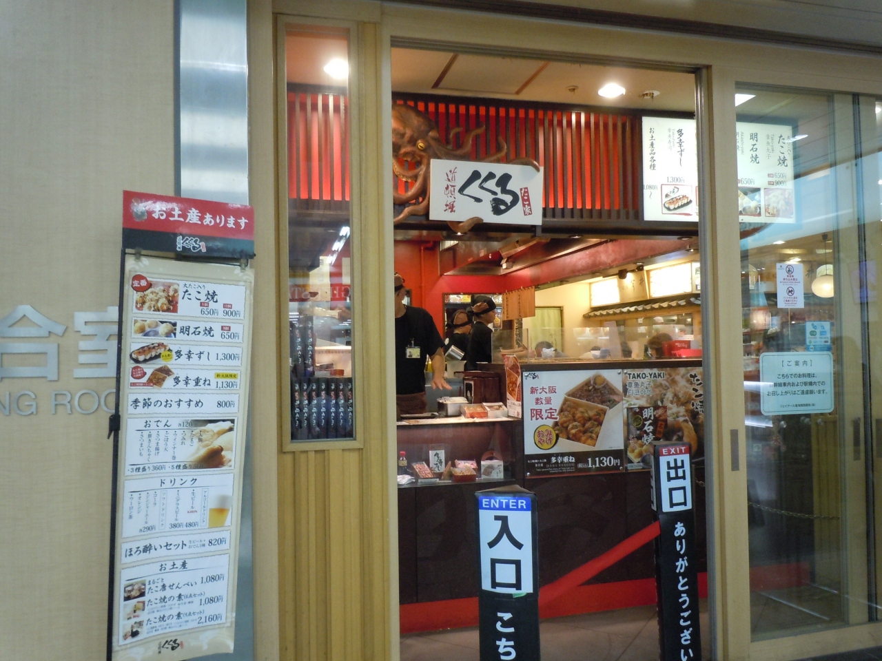 新大阪駅でできたてのたこ焼きを食べるには、?ここ改札内の「くくる」?3F新幹線南改札外の「くくる」?2Fの「たこ昌」があり、どれも大阪の名店です。?はイートインっコーナーもあるので、時間があれば食べていくのがお薦め。