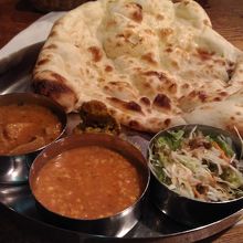 ネパール・インド料理の店ということで、カレーがおいしい。ナンが基本のA~Cランチのほかにご飯のネパールランチもある。Bランチはカレー2種類とナンとライス、チキンと飲み物がついて850円。カレーはおかわり無料らしいが、このままでも十分にお腹いっぱいになる。