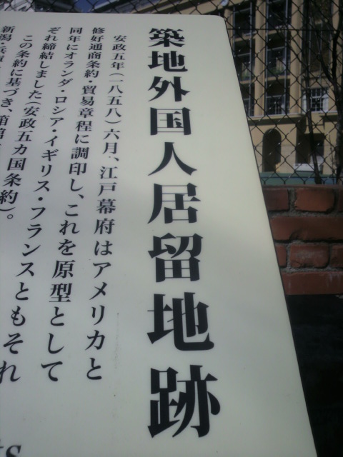 築地居留地跡は、通商条約に基づき、築地に開かれた外国人の居留地でした。