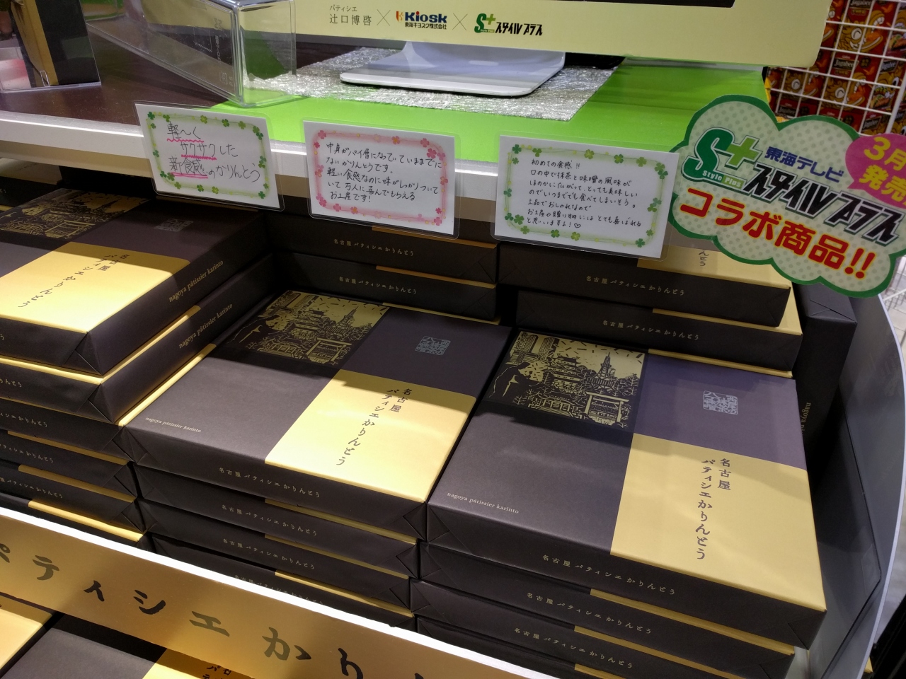 「グランドキヨスク 名古屋」はJR名古屋駅の構内に位置している。ここは通路が広く、買いもんがしやすかった。名古屋の銘菓である、ういろ、和菓子、えびせんべい(黄金缶)など揃っている。東海テレビのコラボ菓子を土産にした。