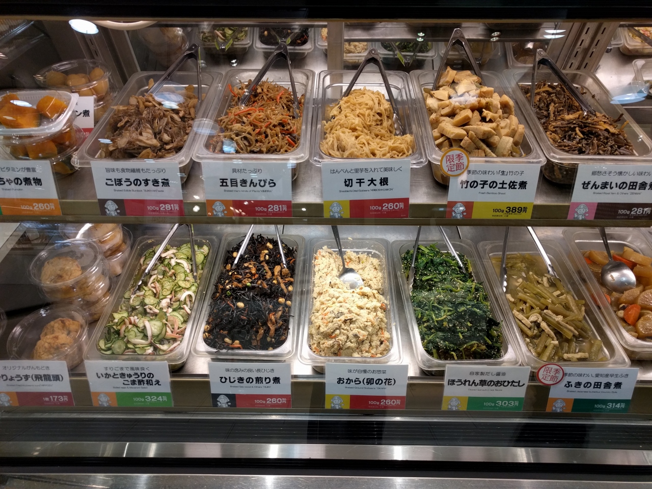 「ゆきこおばさんの台所 名鉄百貨店本店」は名鉄百貨店の地下にある店。大鍋で煮あげた和惣菜がだいたい15種類以上あり、どれもうまそうだ。一見すると地味で定番の和惣菜ばかりであるが、その分値段が安くうまかったからよかった。