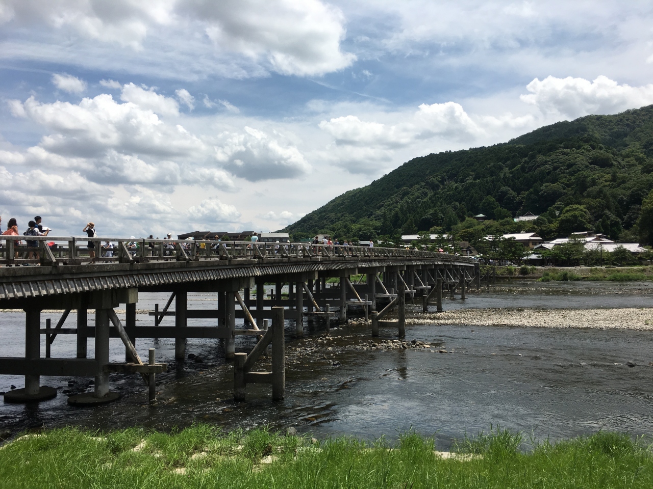 この橋を境に、上流は保津川、下流は桂川と名前が変わります。有名な保津川川下りの終点でもあります。