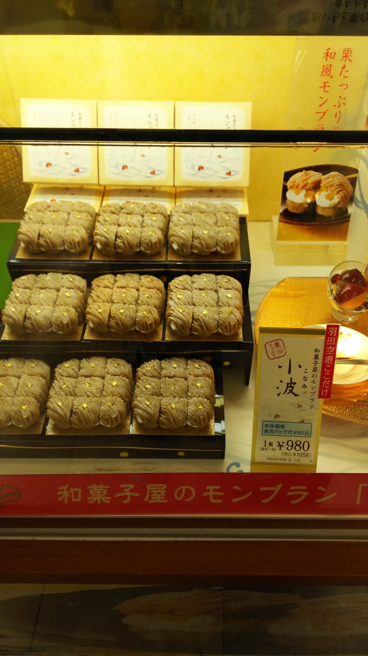 羽田空港にて、お土産物色中に見つけました。羽田空港ここだけ、栗たっぷり、和菓子屋さんのモンブランと言うフレーズと美味しそうなマロンクリームに惹かれて購入。