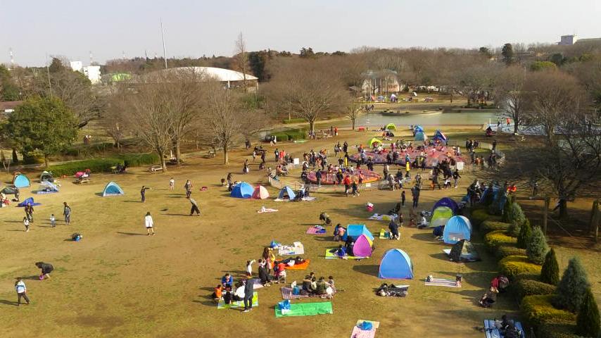 芝生の生えている広場には小さいテントを広げている家族連れが多数おり、何度も来ている人はそれなりに準備をしてきていました。