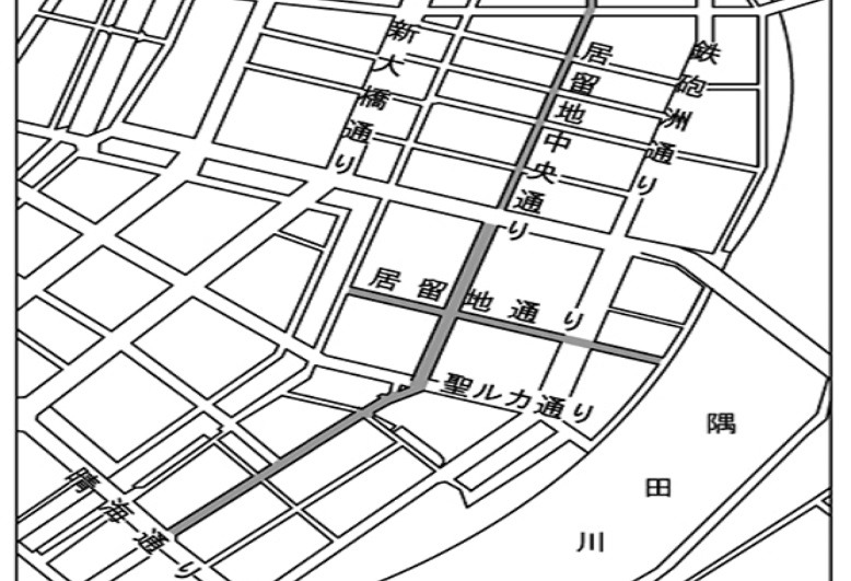 いずれも、築地居留地の中央を貫く、主要な道路です。