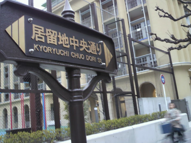海岸線と並行しているのが、居留地中央通りで、海岸線に直交する方向に走っているのが居留地通りです。